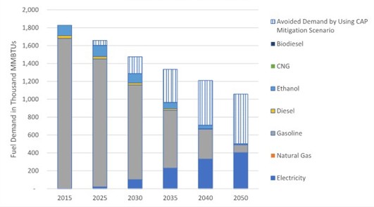 FIGURE 14: REGIONAL PASSENGER CAR ENERGY DEMAND, CAP MITGATION SCENARIO
